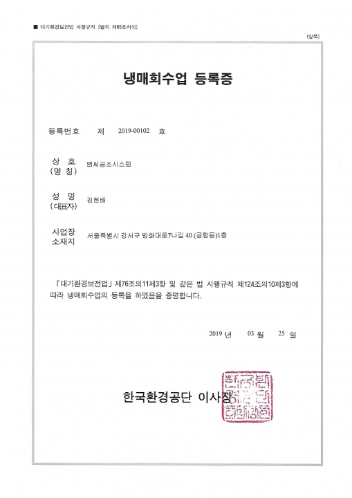 HOME > °¢Á¾ ³Ã¸Åȸ¼ö > ³Ã¸Åȸ¼ö¾÷ µî·ÏÁõ